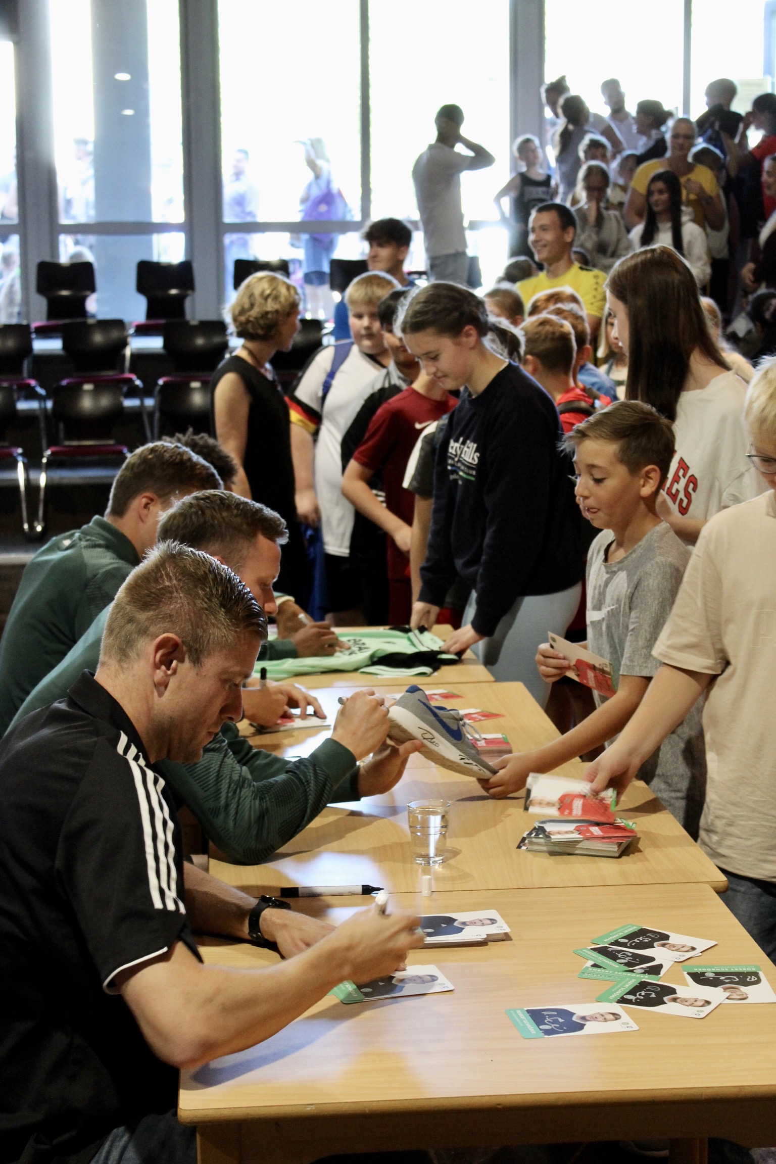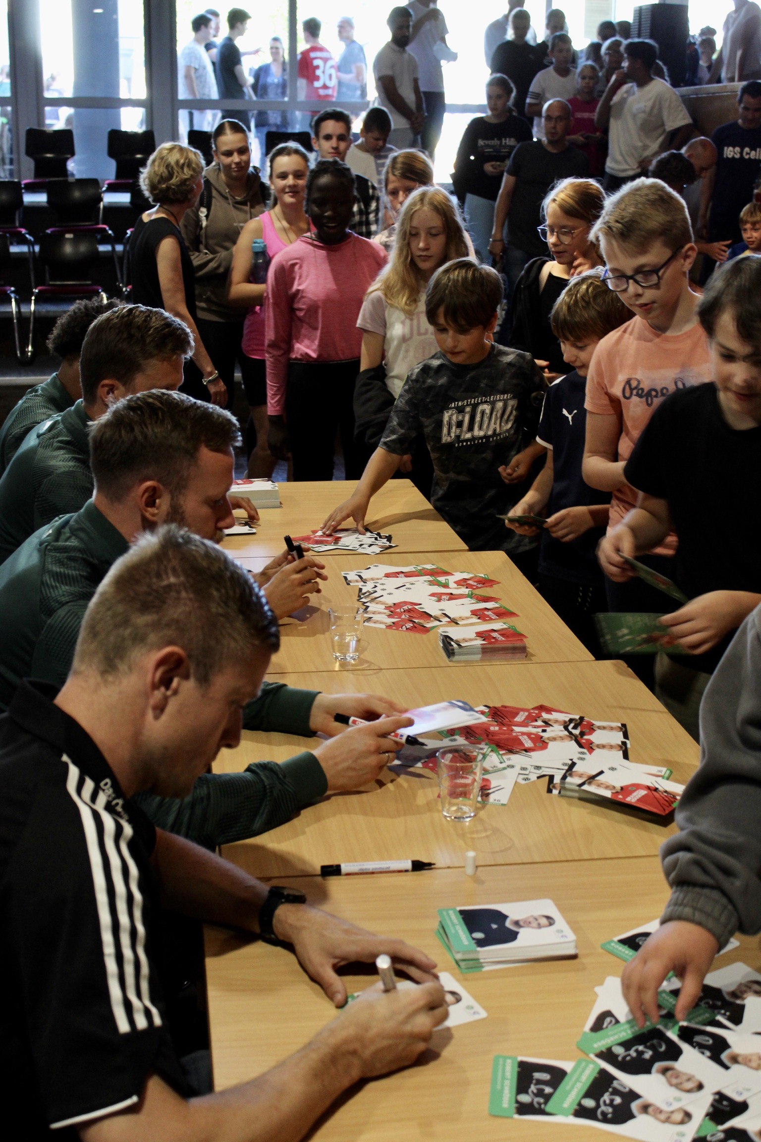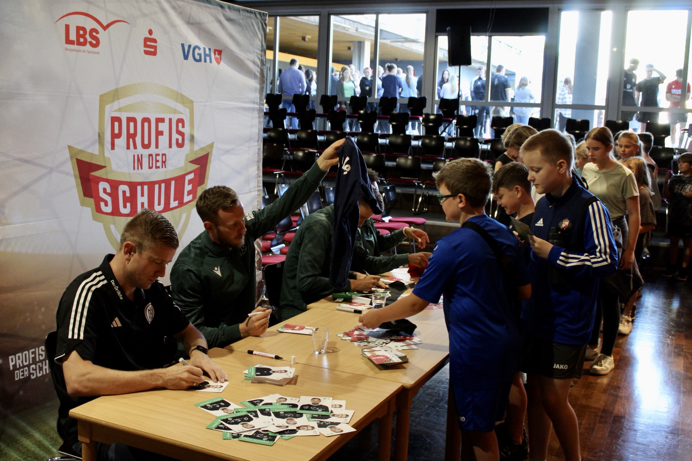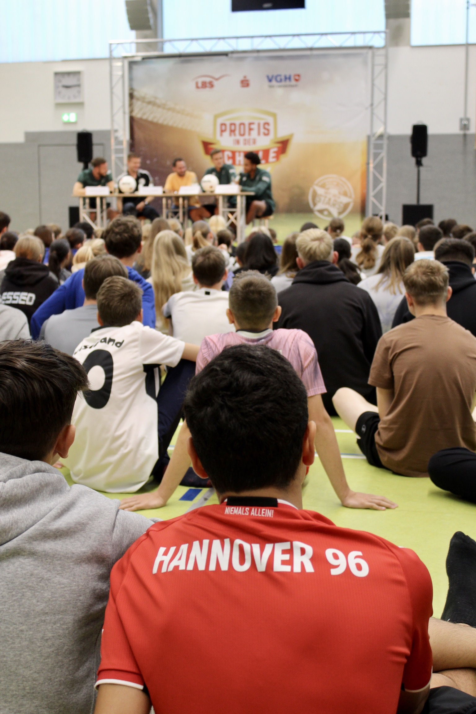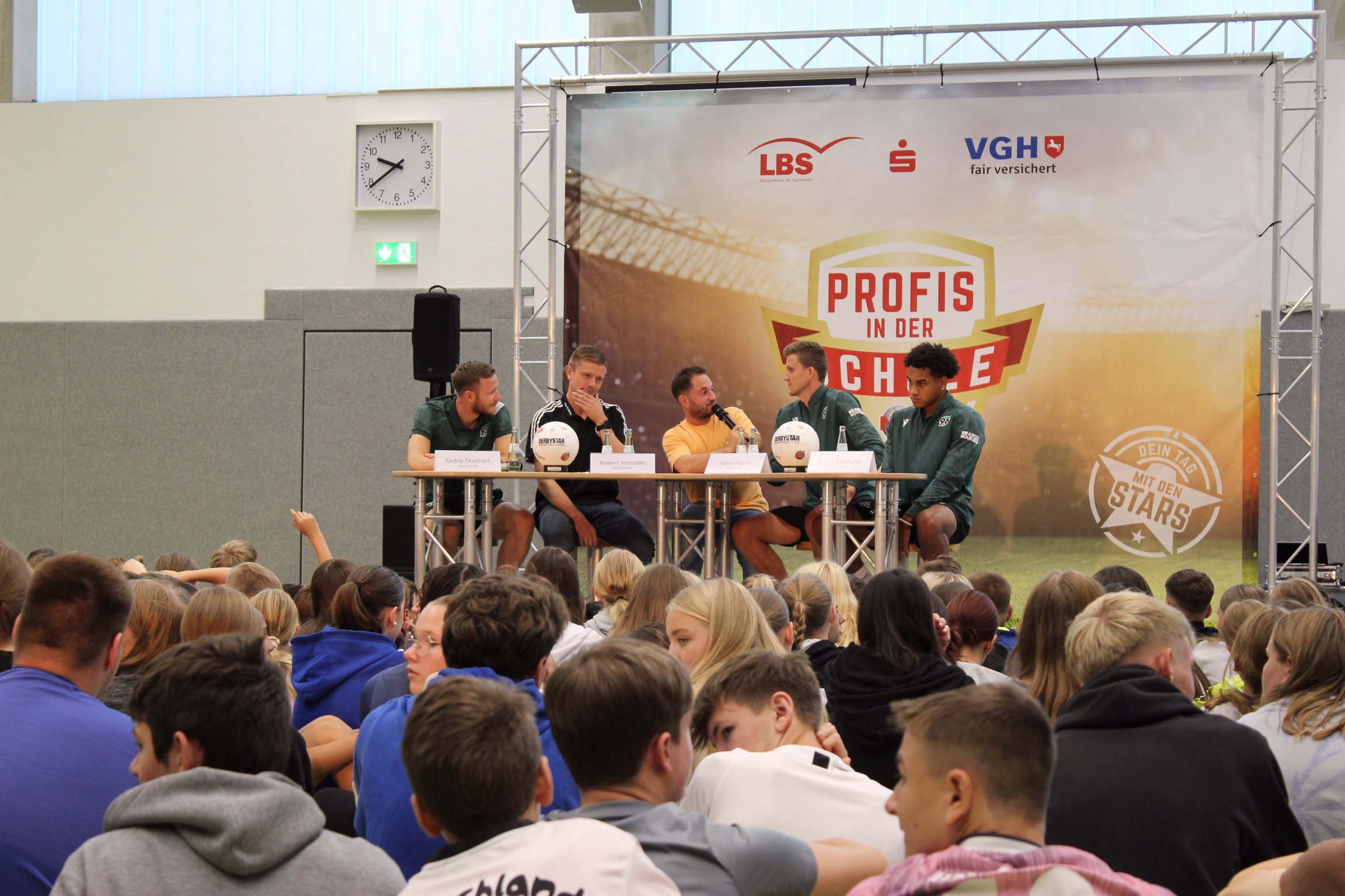 Zu einem großen Aktionstag kamen am 5. September 2023 die „Profis in die Schule“ der IGS Celle. Die Schüler*innen konnten bei einem Treffen mit den Profis von Hannover 96 „hautnah“ Kontakt aufnehmen. Die Handballer der TSV Hannover-Burgdorf hatten leider zur Enttäuschung vieler Schüler*innen kurz vorher abgesagt.
