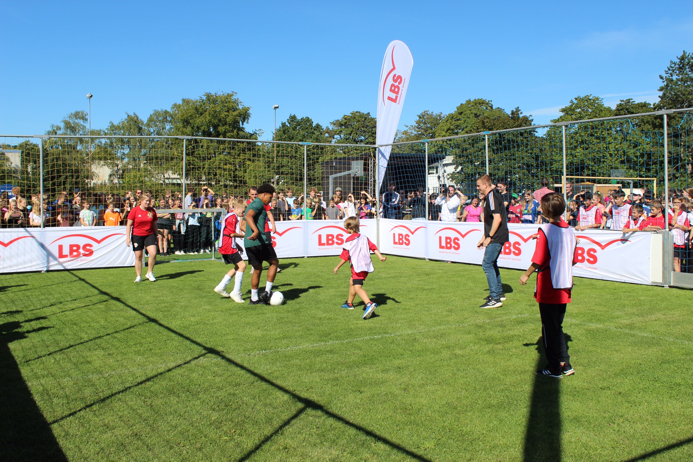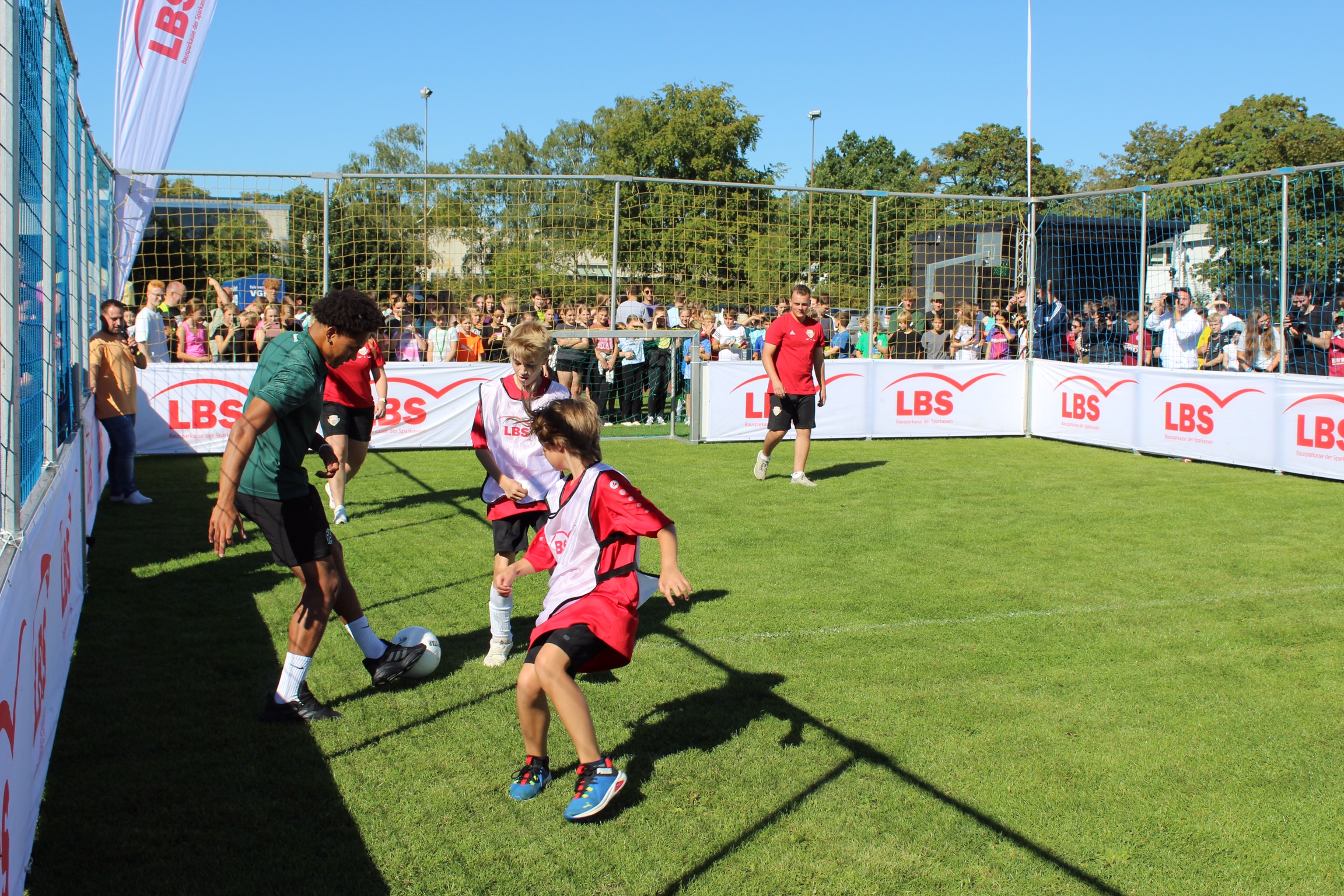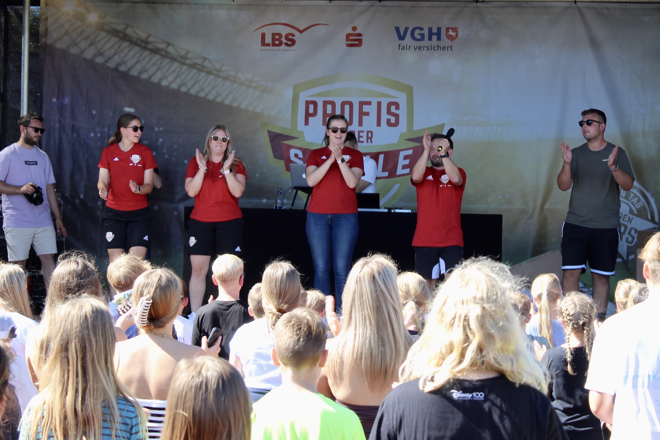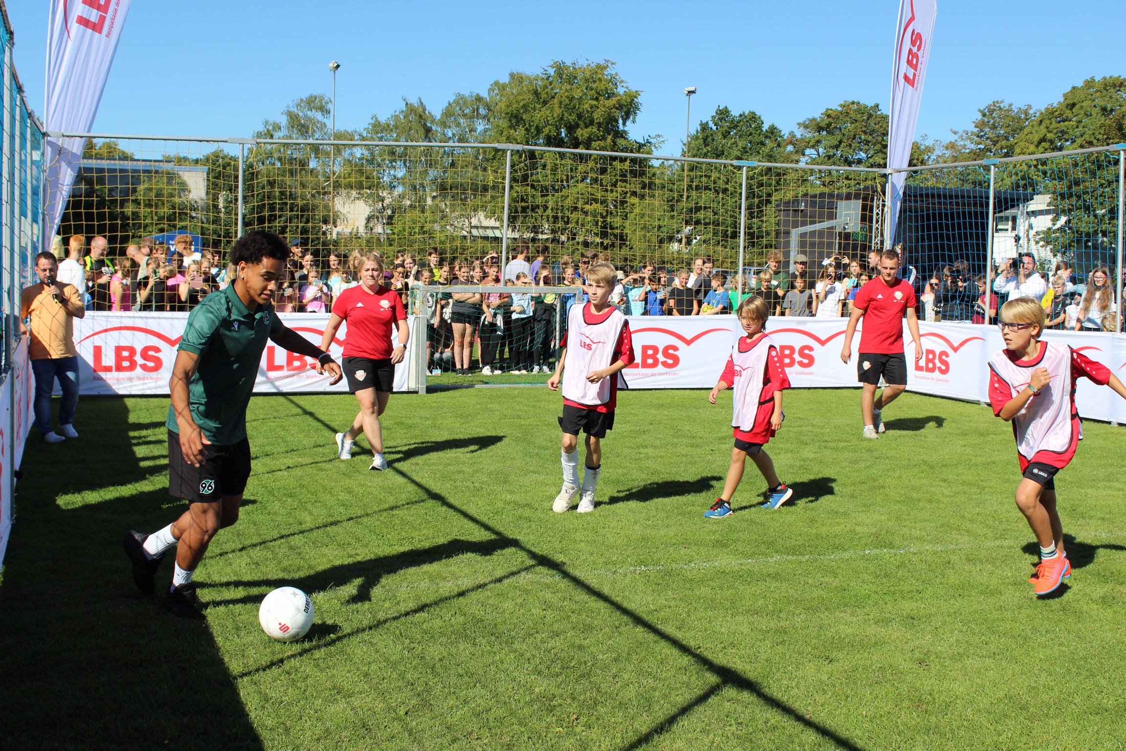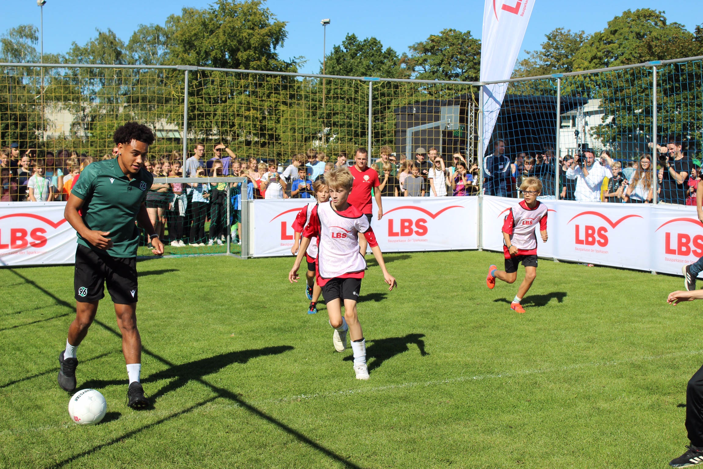 Die Erwartungen an das Event waren bei strahlendem Sonnenschein riesengroß und wurden definitiv nicht enttäuscht. Dank der Planung des 12. Jahrgangs in der Projektwoche und der Bereitstellung des Fußball-Equipments sowie einer Entertainment-Bühne durch den Niedersächsischen Fußball Verband (NFV) wurde die Großveranstaltung ein voller Erfolg. Die Schüler*innen waren hellauf begeistert, als sie erfuhren, dass sie die 96-Profis aus nächster Nähe erleben durften und durch die Aktionen hautnah mit den Profis interagieren konnten.