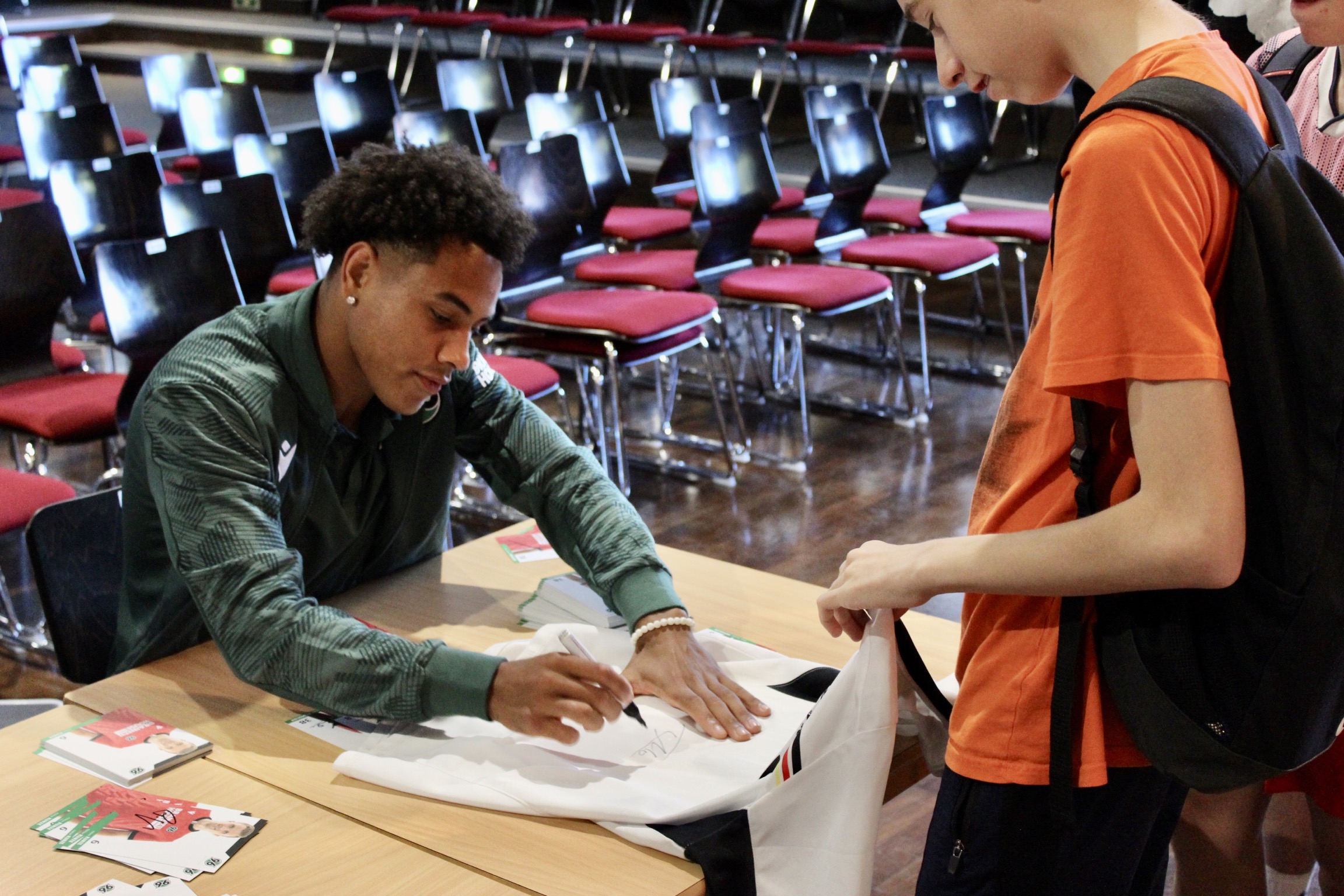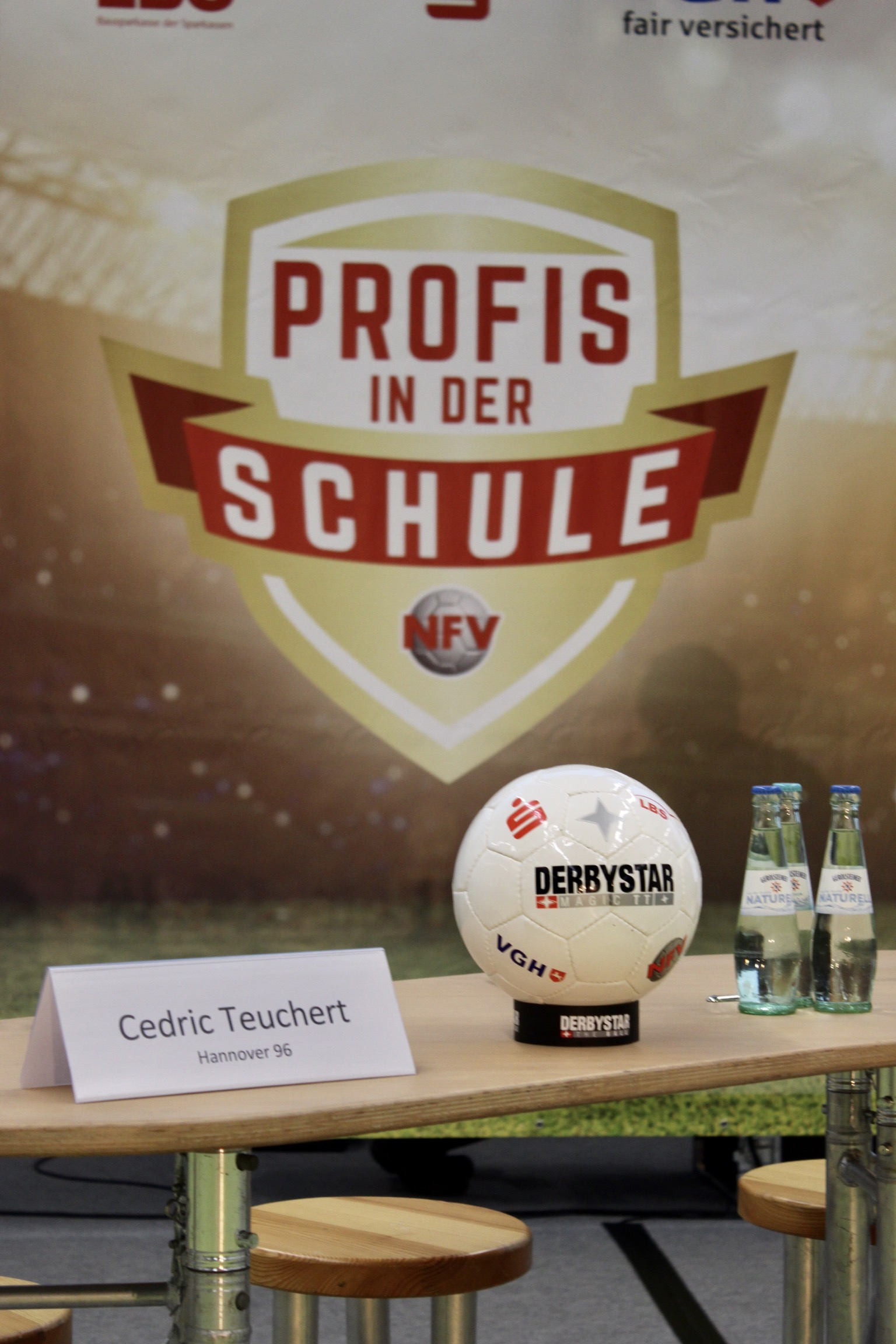 Am Ende der Großveranstaltung gab es dann für die IGS Celle noch zwei große Überraschungen: Hannover 96 übergab ein Trikot mit allen Unterschriften der Profis, das einen würdigen Rahmen im Schulgebäude erhalten wird. Der NFV überreichte darüber hinaus mehrere Netze mit Fußbällen und Trainingsmaterialien für die attraktive Gestaltung des Sportunterrichts und der Pausenzeiten. Vielen Dank!