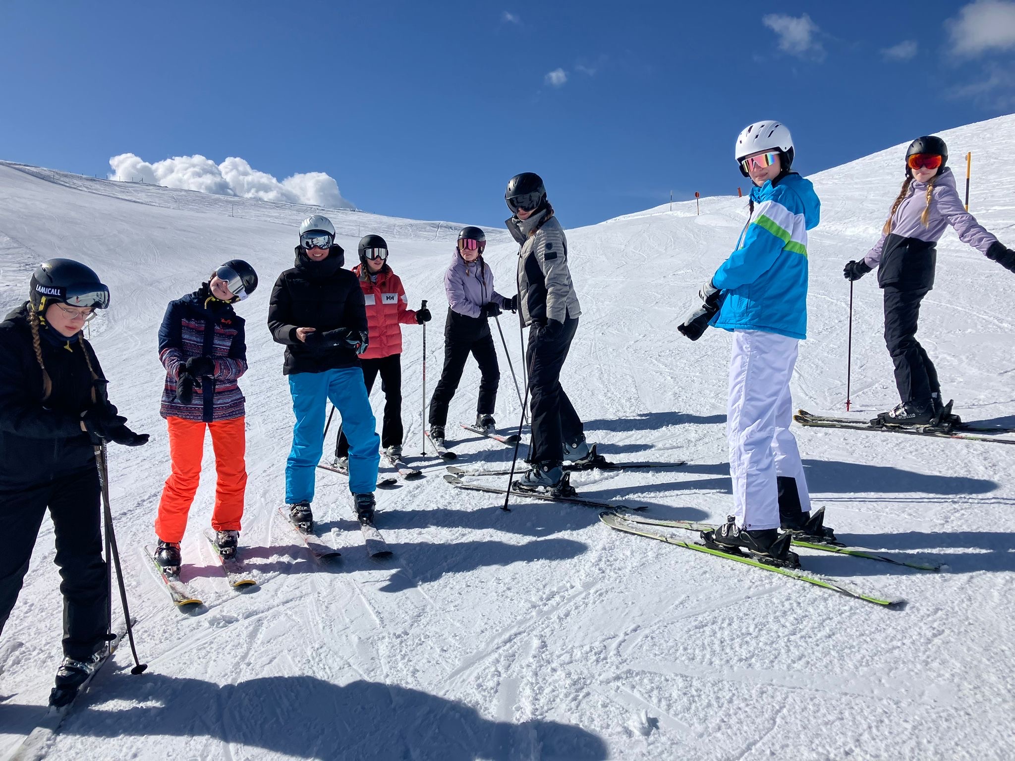 Neben dem Skifahren blieb auch Zeit für gemeinsame jahrgangsübergreifende Erlebnisse. Mittags trafen sich in der Regel alle Gruppen zum gemeinsamen Mittagessen und zu einer kurzen Pause in der Unterkunft. Nachmittags, nach den Skikursen, traf sich die ganze Gruppe an der Gipfelstation, um das atemberaubende Panorama zu bestaunen und den Skitag gemeinsam ausklingen zu lassen.